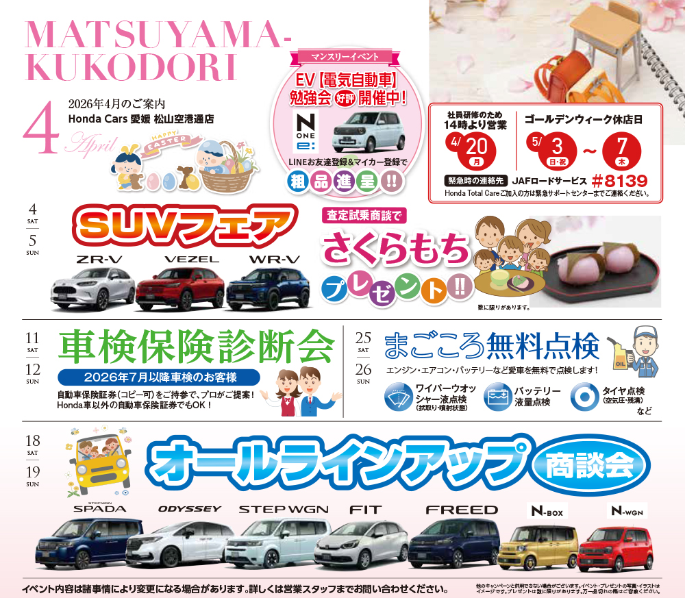 「N-BOX」が2025年度 新車販売台数 第1位を獲得 【本社】, 上泉店, 中央店, 今治産業道路店, 天山店, 新居浜萩生店, 松山久米店, 松山北環状店, 松山南環状店, 松山空港通店 2026.04.10