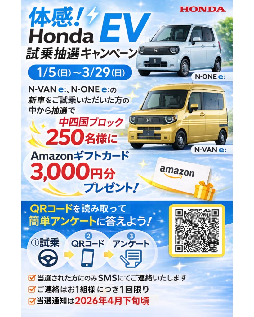 「体感 HondaEV 試乗抽選キャンペーン」実施中です⚡