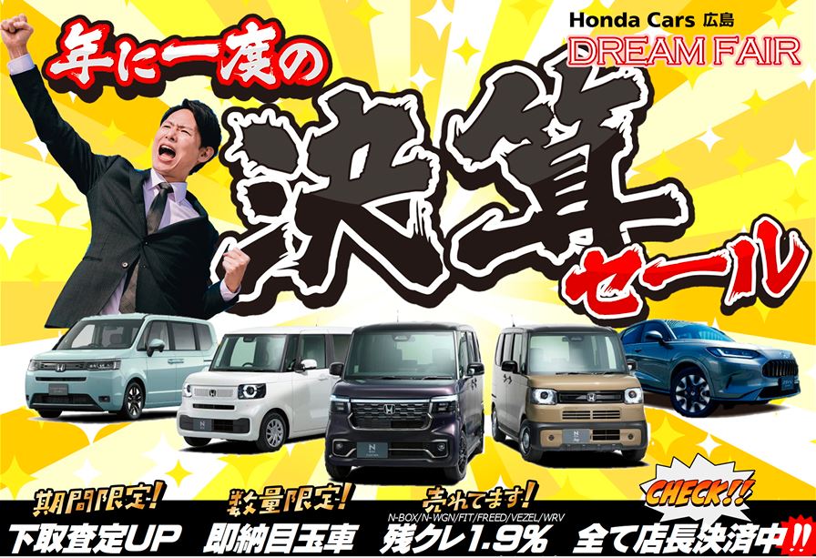 1/24(土)より「Honda Cars 広島 DREAM FAIR 年に一度の決算セール」を開催いたします🎈
