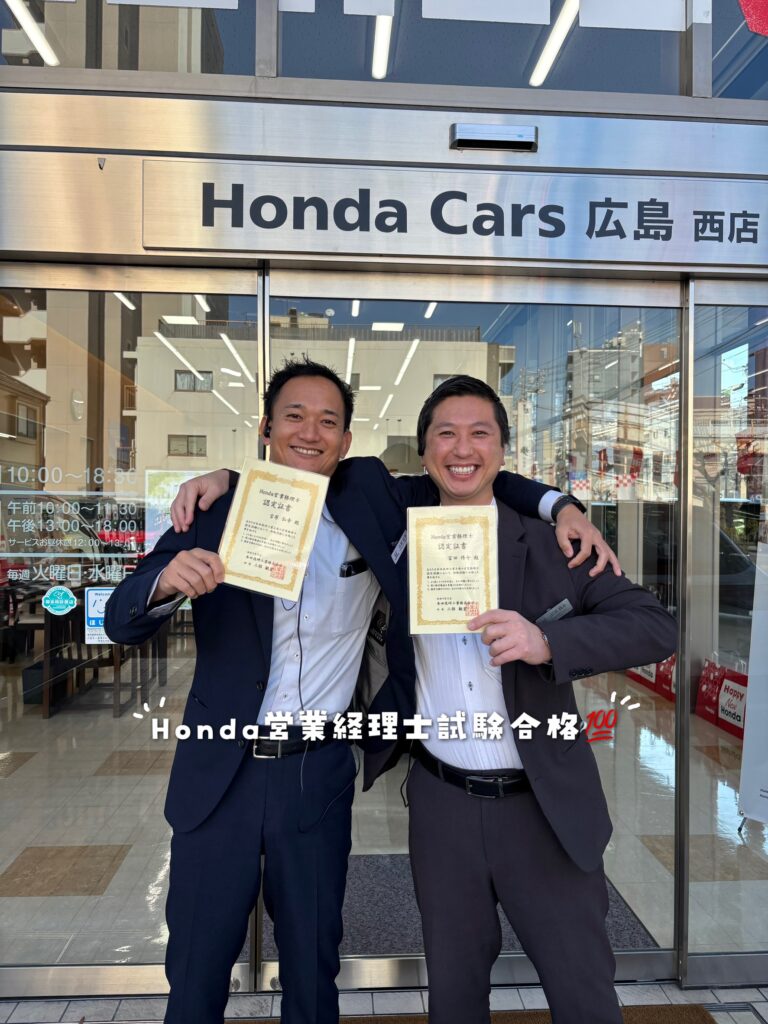 店長の吉原さんと営業の冨田さん 2名がHonda営業経理士試験に合格しました〜!!👏👏