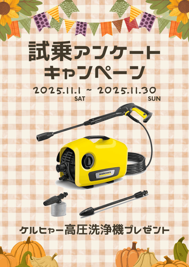 (当店でご試乗後アンケートにご回答いただいた方の中からの抽選となります。)