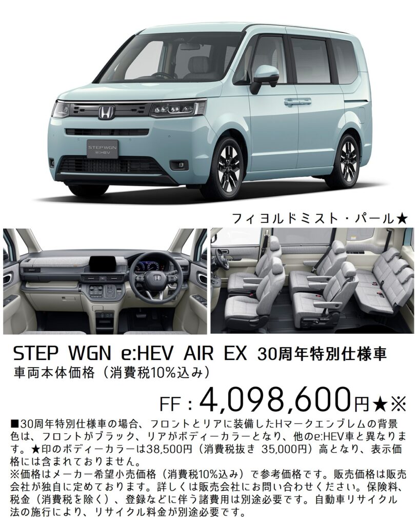STEP WGNに「30周年特別仕様車」を設定し発売