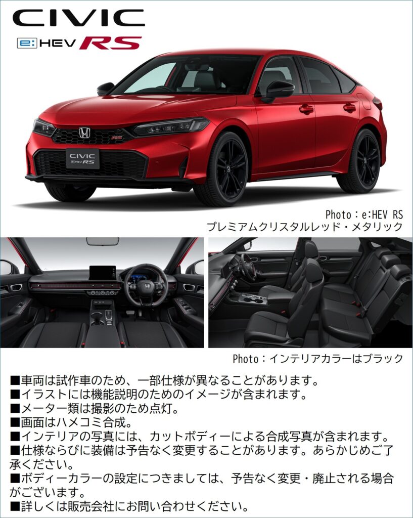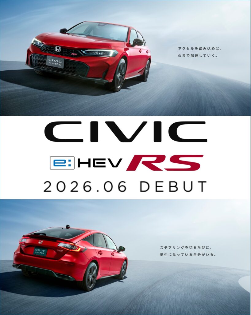 Hondaは、2026年6月に「CIVIC」に新たに追加予定のグレード「e:HEV RS」に関する情報を、ホームページで先行公開するとともに、全国のHonda Carsにて先行予約の受付を開始しました。