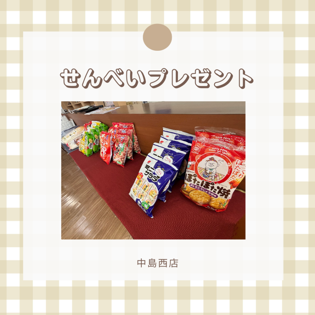 ご来店いただいたお客様には、しょうゆ・えび・しお味のせんべいいずれかをプレゼント♪