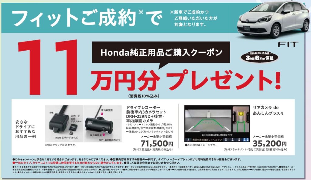 フィットご成約でHonda純正用品11万円分プレゼント!