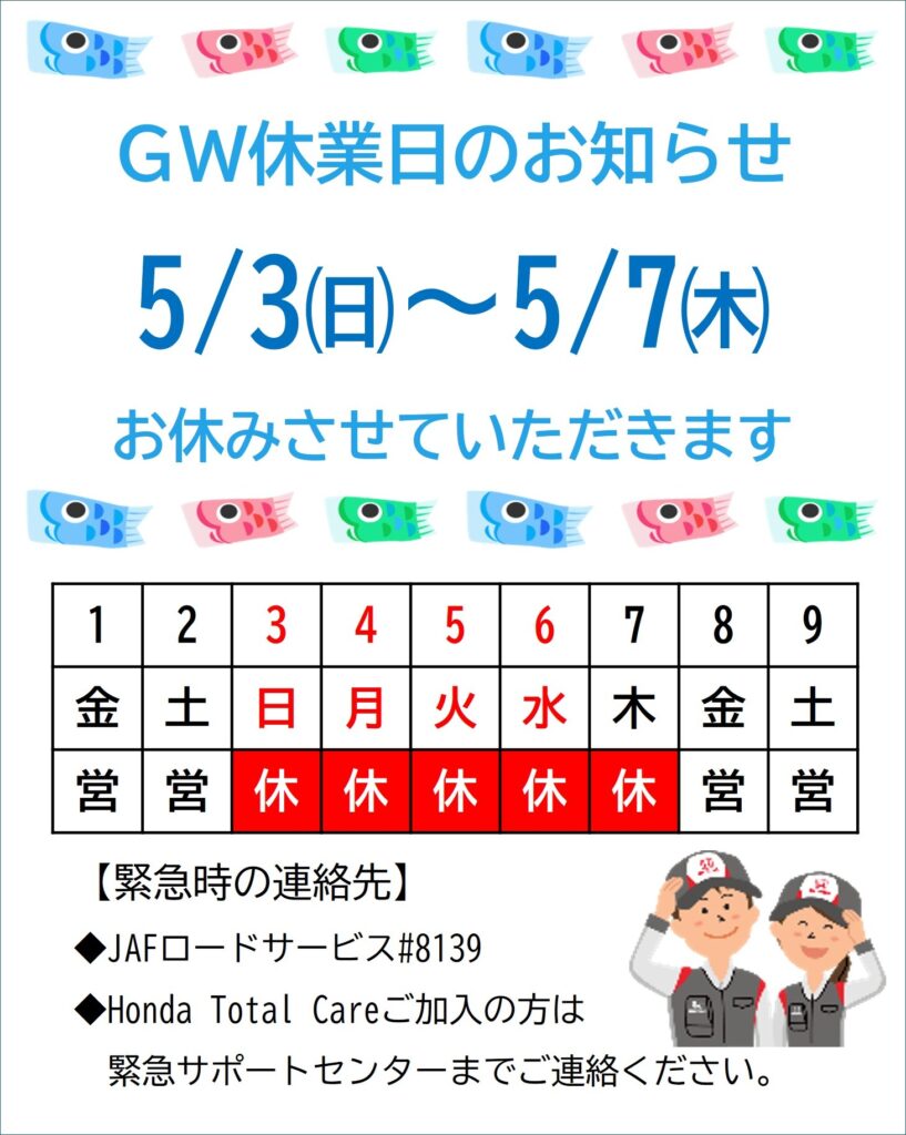 😌⚠️Gw休業のお知らせ⚠️😌