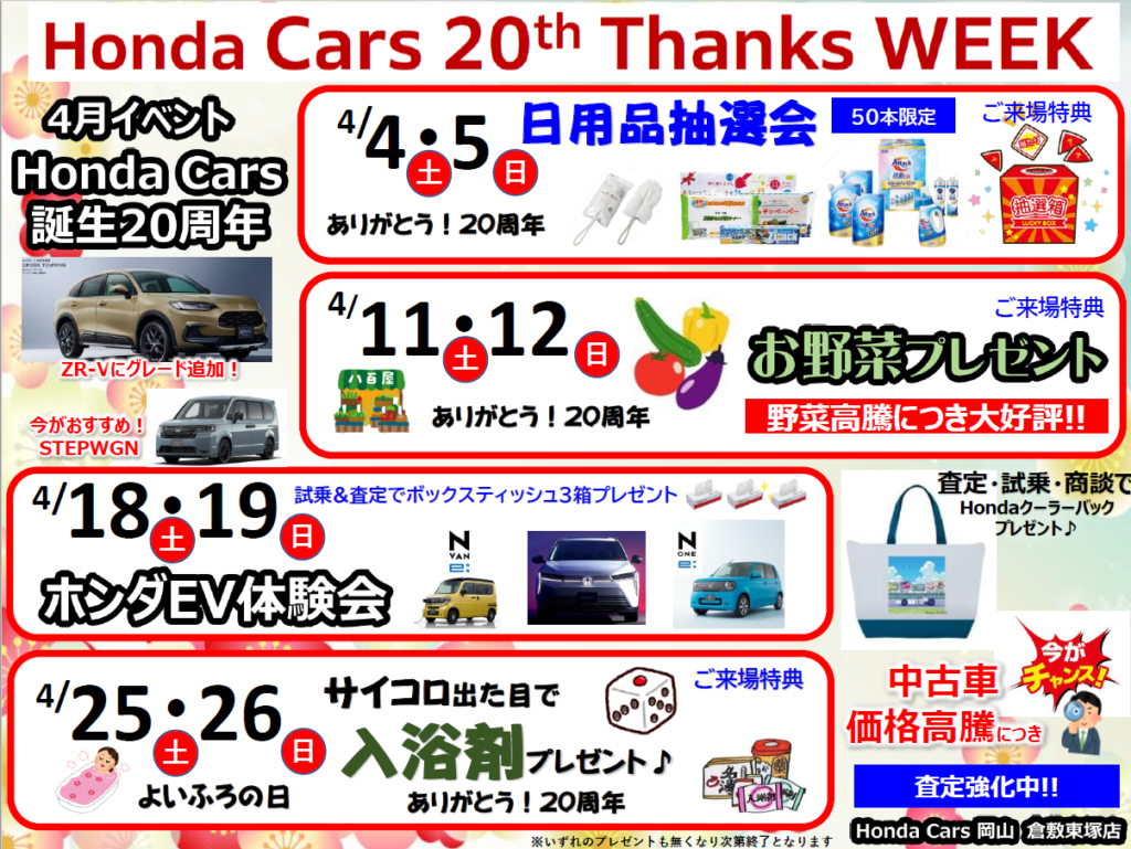 4月も皆様に喜んでいただけるイベントをしっかり準備しておりますので、ぜひ倉敷東塚店にお越しくださいませ🥰