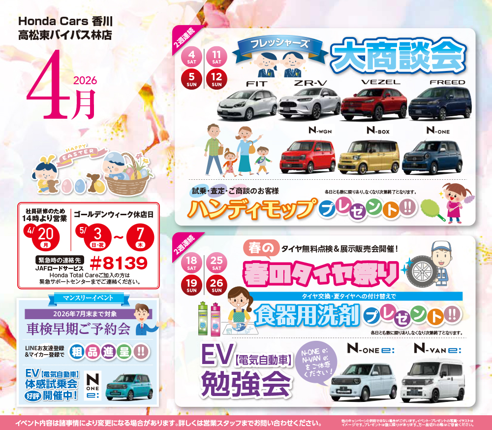 高松東バイパス林店は令和5年3月に店舗の改装を行いました。広々としたショールームでお客様をお迎えするスタッフは、皆様と楽しいひと時を過ごせることを心待ちにしております。末永いお付き合いができるようスタッフ一同頑張りますので、どんな些細なことでもお気軽にご相談下さい。